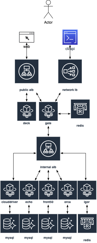 • 4x aurora-serverless-mysql clusters: clouddriver, echo, front50 and orca